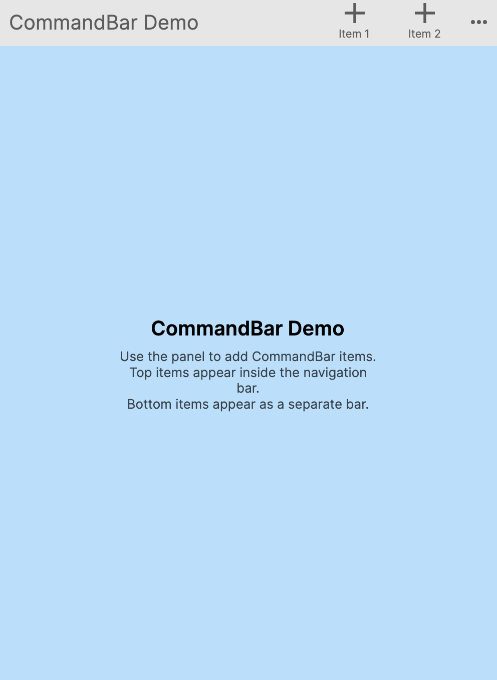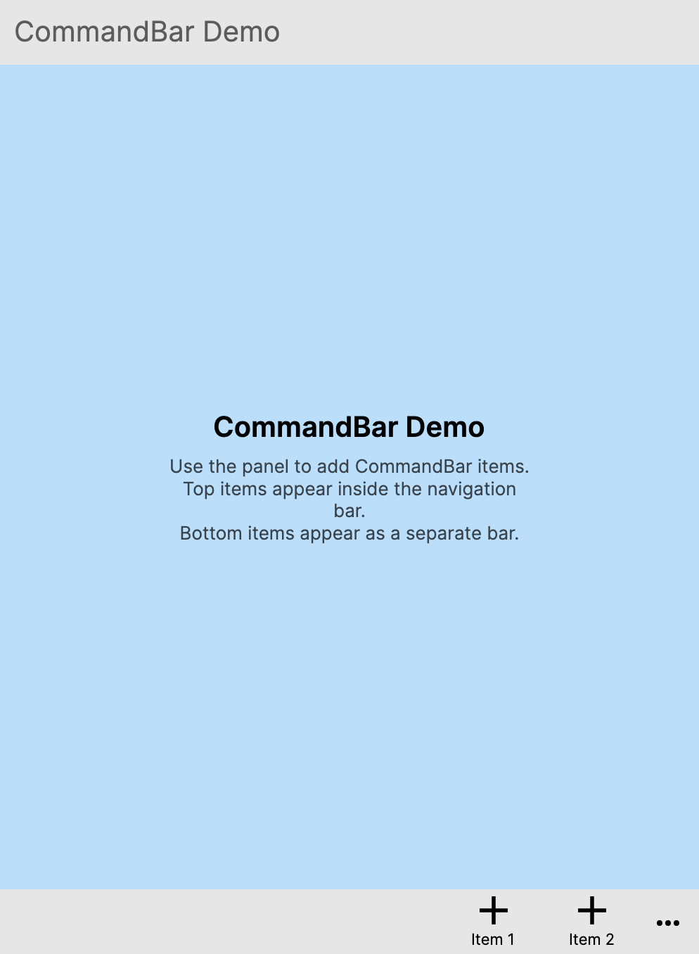 BottomCommandBar works the same way and is placed below the page content. Useful for a mobile action bar: