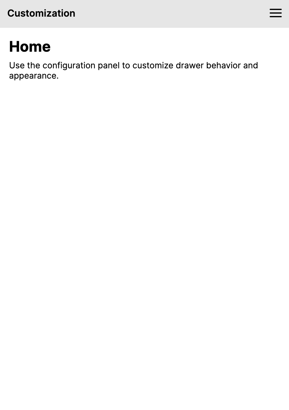 DrawerHeader | object? | null | Content rendered at the top of the drawer pane, above the main drawer content. |