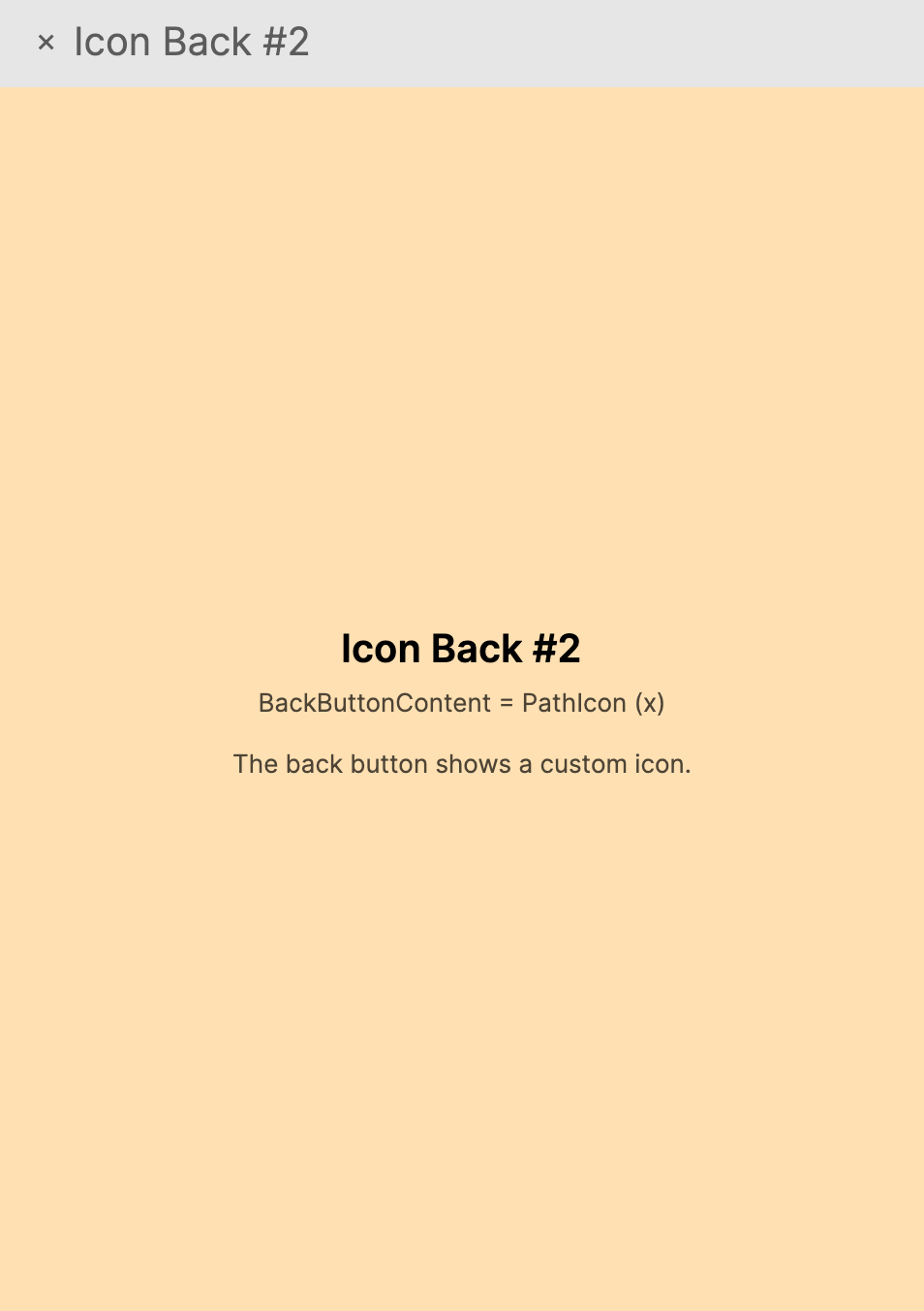NavigationPage.BackButtonContent | object? | null | Custom content rendered inside the back button for a specific page. |
