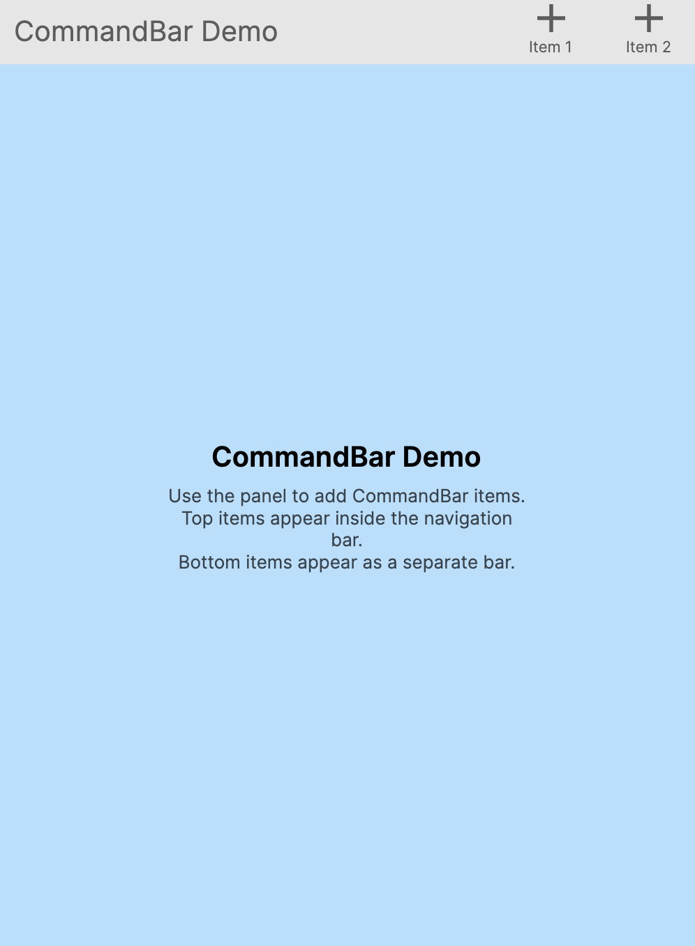 Assign a command bar to a child page. It is rendered in the navigation bar area when that page is at the top of the stack.